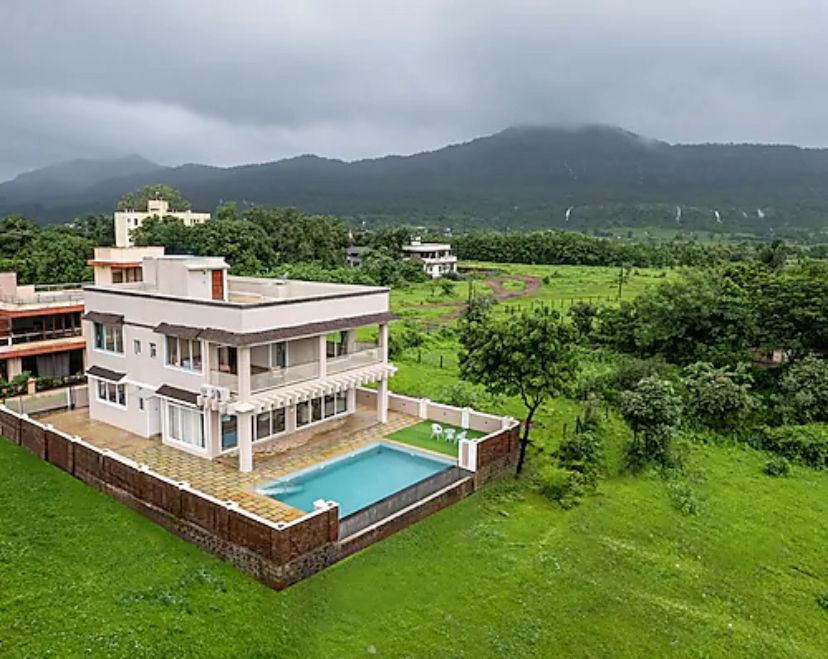 A 5 bedrooms hillside retreat nestled in the scenic beauty of Karjat with private pool, cozy rooms , peaceful vibes , it’s perfect for families and small groups ! Your serene monsoon getaway just drive away …